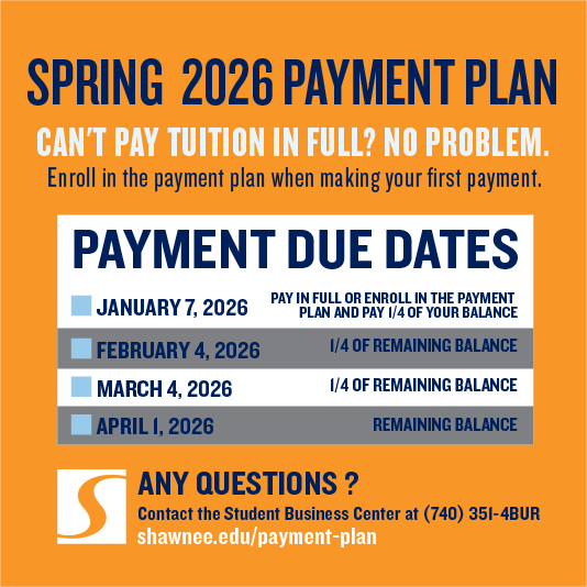 Questions about the Payment Plan ? Contact the Student Business Center at (740) 351-4287 – select option #1